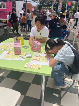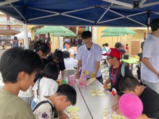 内容は、子供の集中力を保つ工夫の体験型で、それを見守る保護者からの募金がセットになっています。 若者の発想と行動力、真心に感動しました。