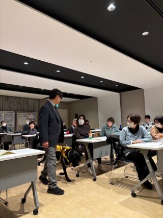 当日は、3種の補助犬(盲導犬・介助犬・聴導犬)の実演を交えてご紹介させていただきました。