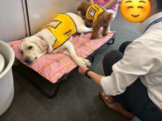 関西支部所属訓練士の松永と前田が参加し、犬たちとふれあっていただきながら、ファシリティドッグや補助犬の役割についてもご説明しました。ファシリティドッグとふれあうことで、癒されるだけではなく、理解を深める機会になれば嬉しいです。